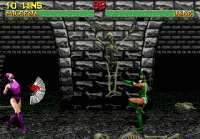 The Mortal Kombat fighters, plus several new ones, return for a tournament held by the evil Shang Tsung of the Oddworld. The action is one-on-one as before, and famed for its high level of violence and blood (other than the sanitised Nintendo version). There are 5 difficulty levels and optional credits, as well as the usual two player mode including same character duels. To win the main tournament, the player must beat each of the other human players, before taking on Sheng Tsung, Kintaro and finally Shao Kahn. Players have a range of punches and kicks available, as well as flying kicks, uppercuts, roundhouses, and the special moves, which vary for each player. These include throws, uppercuts, long-distance bullets, bicycle kicks and a teleport feature. www.Mobygames.com