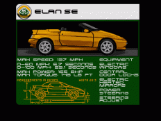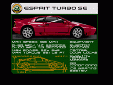 This sequel to Lotus Esprit Turbo Challenge takes in eight distinct terrains, including driving across the desert, snow tracks, and on two-way motorways with oncoming traffic, incorporating civilian cars and trucks and rivers. You are no longer racing directly against other cars or over laps, instead, racing is on time as you have limited time to reach each checkpoint. Reaching each of these extends your time, and any remaining time is turned into bonus points if you successfully complete the track. You have two cars at your disposal, which the game chooses automatically for each level, hence the loss of the word 'Esprit' from the title. The Lotus Esprit form the original is joined by a Lotus Elan convertible, which is slower but has better grip. You can play through the set of tracks either full-screen or in split-screen mode with a friend of yours. On Amiga and ST the game allows you to link two machines, each of which can have two human players. If one player successfully compeltes one of the 8 courses, all players can continue onto the next one. www.Mobygames.com