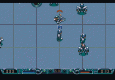 Brutal Deluxe don't live up to their name - in fact they're the worst team Speedball has ever seen. As their manager, it is your job to transform their fortunes. As well as the league system, which consists of 2 8-team divisions and challenges you to advance to the top, there are also 2 cup tournaments, one of which is played out over 2 'legs' with the aggregate score deciding who progresses. You can play the matches as well, which is the real meat of the game. They consist of 2 90-second periods, and the gameplay is futuristic, fast and frantic, with heavy tackling encouraged to retrieve the ball. Power-ups and tokens appear on the pitch, including ones to make your players extra-tough or freeze the opponents. The sides of the pitch each include a score multiplier, which you can run the ball through to increase the value of your scoring - the opposition can sometimes immediately grab the ball and nullify this. There are also 5 stars which are worth 2 points each if you hit them (more if you have the multiplier activated), but these can also be cancelled out by the opposition hitting the same star, and their points values only become set after the half. Next to the stars there are 'portals' which throw the ball out the opposite side of the pitch, in the direction it was going. You get money for the results, and by collecting the silver tokens which appear on the pitch at random intervals. Between each match you can spend these either on improving your existing players as far as they can go, or on buying better ones and fitting them into the team. Your original players can only be improved to a certain extent, so remembering where your signed players are and making use of them is important. A variety of tokens also appear during the match, some of which boost your team's power for a short period of time, and one freezes the opposition. www.Mobygames.com